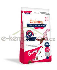 Calibra Dog Expert Nutrition Energy jsou hypoalergenní granule s vysokou energetickou hodnotou pro dospělé psy. Kompletní krmivo pomáhá podporovat výdrž a vytrvalost a je vhodné zejména pro psy pracovní či jinak aktivní (sport, výstavy atp.), je také vhodné pro psy, kteří potřebují zvýšit svou tělesnou hmotnost, a pro březí feny.