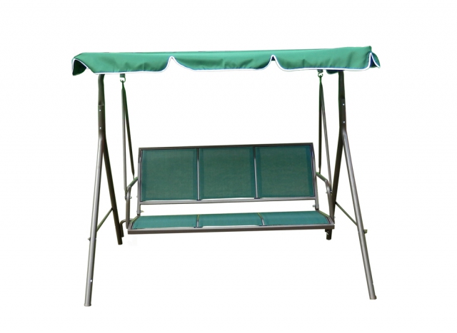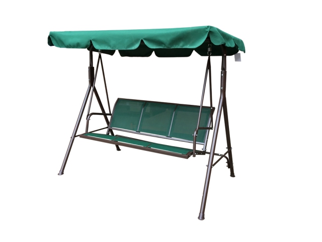 Zahradní houpačka COMFORT s kovovou konstrukcí. Sedák a opěrák-z umělé textilie v béžové barvě. Houpačka je určena pro tři osoby.