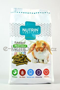 Krmení je jednoduché, přehledné, a vždy víte, že králík dostal to, co potřebuje. •Kompletní krmivo Nutrin Complete je vyváženým zdrojem veškerých potřebných živin, vitamínů a minerálů •Příznivě působí na imunitní a detoxikační funkce organismu •Tvar, textura a tvrdost granulí Nutrin Complete výrazně podporuje obrus zubů •Krmivo Nutrin Complete má vysoký obsah vlákniny - 20% •Lahodná chuť a vůně krmiva Nutrin Complete, je ovlivněna pouze přírodními složkami a obsahem mnoha druhů zeleniny, jako karotky, pastiňáku, petržele, řepy nebo špenátu •Eliminace selektivního vybírání oblíbených kousků krmiva •Krmivo Nutrin Complete významně přispívá ke zdravému vývoji zvířete •Omega-3 a omega-6 mastné kyseliny příznivě ovlivňují zdravý vzhled kůže a srsti •Lehká stravitelnost krmiva Nutrin Complete díky jeho sofistikovanému obsahu a technologii zpracování •Bez konzervantů a umělých barviv Krmivo Nutrin Complete Rabbit adult, je určeno pro králíky od 8. měsíce věku. Přechod z krmiva Nutrin Complete Junior pro mladé králíky by měl probíhat postupně zhruba od 7. měsíce, kdy už je většina jedinců fyzicky vyspělá. V praxi se jedná o pozvolné navyšování krmiva pro dospělce na úkor junior krmiva. Nahrazování původního krmiva by mělo proběhnout postupně především z hlediska prevence zažívacích potíží a také proto, že králík ne vždy nové krmivo okamžitě akceptuje. Délka období se tak může lišit od několika dnů až po několik týdnů. Krmná dávka od začátku až do úplného vysazení junior granulí, by se měla řídit doporučenou denní dávkou krmiva Nutrin Complete Rabbit adult, tedy 4 - 6 g na 100 g tělesné hmotnosti. Tento postup je aplikovatelný i při změnách krmiva v pozdějších fázích věku. Denní množství je vhodné rozdělit a podávat ráno a večer. Vždy zajistěte neomezený přístup k senu a čerstvé vodě. V případě, že králík pravidelně nekonzumuje vše nebo není pozorován úbytek sena, je vhodné denní dávku snížit. Spestření ve formě zeleného krmiva, čerstvého ovoce, zeleniny a ohryzu je možné. Veškeré změny, týkající se krmné dávky, by měly být prováděny s ohledem na tělesnou hmotnost, kondici a zdravotní stav jedince. Složení: Vojtěška, pšenice, lignocelulosová vláknina, kukuřice, pivovarské kvasnice, ovesná vláknina, sojový protein, petržel, monokalciumfosfát, jablečná vláknina, ovesná vláknina, karotka, pastinák, řepkový olej, sůl, cukrovarské řízky, výlisky z vína, červená řepa, špenát, vápenec, lecitin (0,5%), slunečnicové slupky, pecičky z vína, lysin (0,3%), methionin (0,2%), FOS inulin (0,2%), yucca shidigera (0,1%), jablečné výlisky, vitamin A 10000 m.j., vitamin D3 1200 m.j.,vitamin C 200 mg, cholinchlorid 200 mg, Fe (monohydrát síranu železnatého) 80 mg, Mn (oxid manganatý) 60 mg, Zn (oxid zinečnatý) 60 mg, vitamin E 50 mg, niacinamid 35 mg, vitamín B5 25 mg, vitamín B2 15 mg, vitamín B1 12 mg, Cu (pentahydrát síranu měďnatého) 10 mg, vitamín B6 8 mg, I (jodičnan vápenatý) 1 mg, Co (heptahydrát síranu kobaltnatého) 1 mg, vitamín K3 0,65 mg, Se (selenomethionin) 0,3 mg, Biotin 0,22 mg, vitamín B12 0,03 mg. Analytické složky: Hrubý protein 14%, hrubá vláknina 20%, škroby 23%, hrubé oleje a tuky 3%, obsah anorganických látek 7%, K 1%, Ca 0,8%, P 0,5%, Na 0,2%, Mg 0,2%