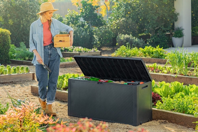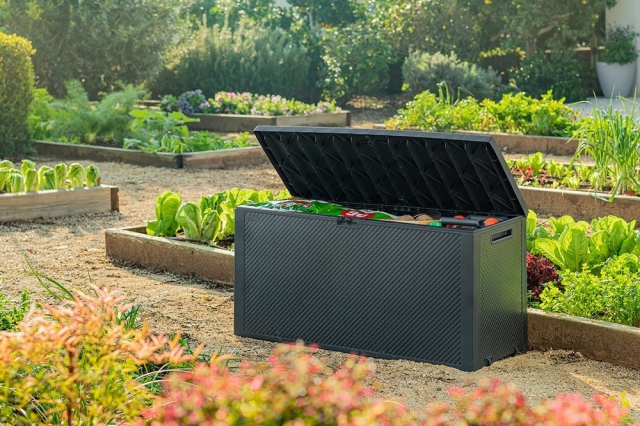 Plastový box pro uložení nejrůznějších předmětů (podušky, zahradní náčiní...) od firmy KETER. Výhodou tohoto boxu je jednoduchá montáž (bez využití nářadí - vše složíte jako stavebnici), vysoká kvalita boxu a moderní design. Materiál má UV ochranu a je odolný nepřízni počasí.