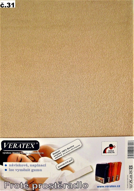 složení: 80% Bavlna, 20% Polyester, vrchní smyčka 100% Bavlna Kvalitní české froté vypínací prostěradlo s vyměnitelnou gumou v tunýlku výška matrace až 16 cm, gramáž 210 g/m2