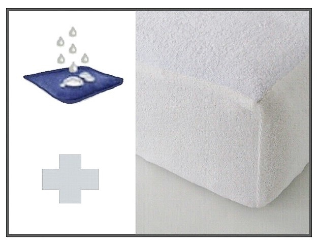 Voděodolné froté prostěradlo bílé. Praní až do 95 st.Celsia. složení boky: 80% Bavlna, 20% Polyester, vrchní smyčka froté 100% bavlna, ochranná vrstva: polyuretan Určeno pro matrace 140x200 až do výšky matrace 17 cm. (pouze v bílém provedení)