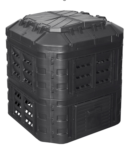 Plastový kompostér o objemu 600 L z velmi pevného polypropylenu. Konstrukce zajišťuje cirkulaci vzduchu a urychluje rozkladný proces. Součástí výrobku je víko i boční dvířka pro snadné vyjímání kompostu. Kompostér je odolný vůči povětrnostním podmínkám, UV záření a můžete ho mít venku za každého počasí -30 °C až 45 °C. Montáž je velmi jednoduchá, díky CLICK systému není zapotřebí žádné nářadí. Vyrobeno z recyklovaného materiálu.