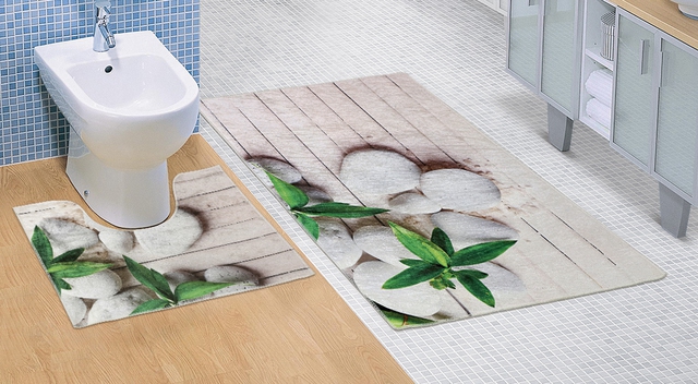 Koupelnová sada předložek 3D: 60x100 bez výkroje + WC 60x50cm s výkrojem Koupelnová sada obsahuje předložku o rozměru 60x100cm 1ks a 60x50cm 1ks s výkrojem na WC. Koupelnové předložky 3D okouzlí svým fototiskem, pestrými a věrnými barvami. Z jedné strany je fototisk, z druhé strany protiskluzový latexový nátěr, díky němuž předložky nekloužou po koupelnové podlaze. Složení: 100% polypropylen Možnost praní: 30°C bez použití aviváže