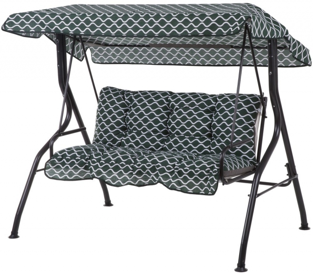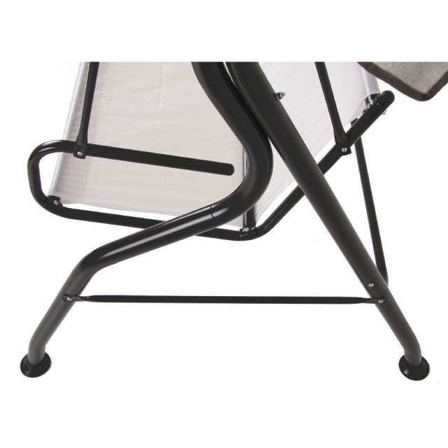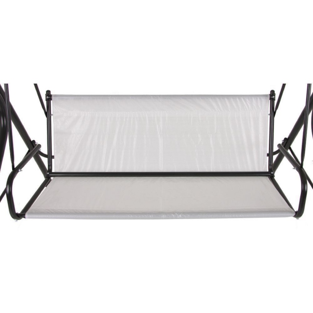 Houpačka pro 3 osoby. Solidní, pevná konstrukce. Rám malovaný práškovou polyesterovo-epoxidovou antracitovou barvou. Stříška vyrobena z polyesteru, má speciální tunely přizpůsobené ke střešní konstrukci houpačky. V sadě také 2 prošívané sedáky. Vrch sedáku z bavlny, spodek z lustrasilu. Obšito lemem z polyesteru. V opěrné části šňůrky pro připevnění k rámu. Stříška z bavlněné tkaniny v barvě sedáků.
