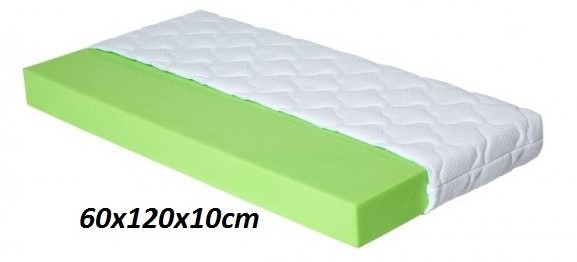 Dětská matrace vyrobena ze studené pěny střední tvrdosti. Výška 10 cm. Možnost praní potahu na 40 °C Materiál potahu - bavlna s polyesterem, prošitý polyesterovým rounem z dutého vlákna Materiál jádra - kvalitní studená pěna Prodyšnost matrace - vysoká Hmotnost matrace 120x60 - 4 kg Zhotovíme libovolné rozměry a tvary matrace