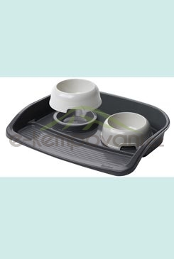 Dvě plastové misky s praktickým podnosem, objem misek 0,3 litrů. Vhodné pro kočky a malá plemena psů.