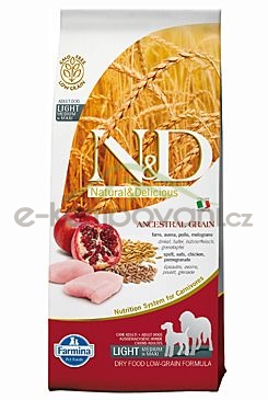 Kompletní suché krmivo s nízkým obsahem obilovin, kuřecím masem a granátovým jablkem pro dospělé psy středních a velkých plemen. Receptura je uzpůsobena přesně na míru psům s potřebou snížit tělesnou hmotnost.
