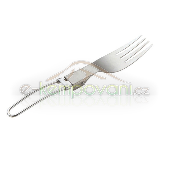 Vidlička vyrobená z nerezové oceli se sklápěcí rukojetí.