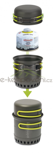 Hrnec s hlubokou poklicí, vylepšený o tepelný výměník, vyrobený z hliníku s anodizovaným povrchem. Sklopné rukojeti jsou vyrobeny z ocelového drátu, opatřeného silikonovou žáruvzdornou bužírkou.