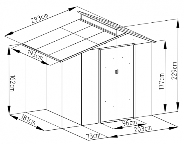 Zahradní domek využijete pro uskadnění např. zahradního nářadí, sekačky, příslušenství k bazénu atd. Součástí domku je i přístřešek pro jízdní kola. Moderní designu domku se hodí do každé zahrady. Domek má dvojité posuvné dveře, tudíž do něj budete mít pohodlný přístup. Vyroben z kvalitních ocelových plechů tloušťky 0,25 mm. Ocelová, pozinkovaná konstrukce s ventilačními mřížkami. Bez podlahy.