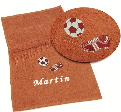 složení: 100% bavlna, 400g froté osuška s výšivkou fotbalové kopačky a míče a Vámi zvoleného jména nebo textu.