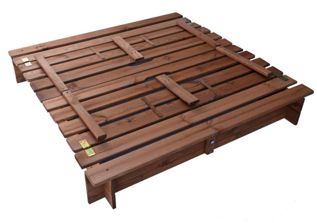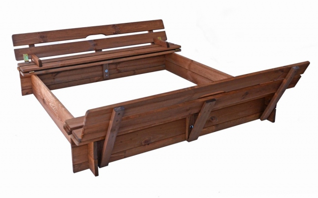 Čtvercové pískoviště s lavičkami. Vyrobené z borovicového dřeva (impregnované). Z laviček jednoduchým složením vytvoříte poklop pískoviště! Toto pískoviště zahrnuje zábavu pro nejmenší, posezení a zároveń praktické uzavírání.