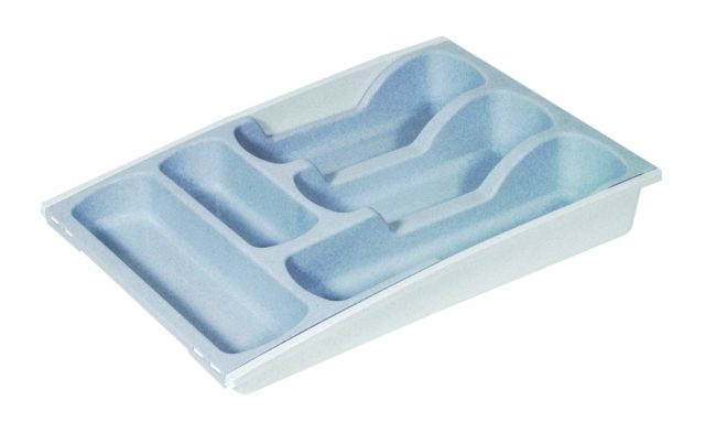 Plastový příborník do zásuvky značky Curver s pěti přihrádkami pro lžičky, lžíce, vidličky, nože a další.