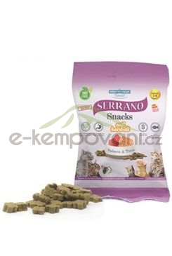 Serrano Snack pro kočky jsou malé kousky, ideální jako pamlsek, vzhledem k jejich velikosti, struktuře a chuti. Jsou vyrobeny z čerstvého masa a ryb, uvařených při nízkých teplotách, poskytují všechny potřebné živiny a jsou ideálním doplňkem stravy pro vaši kočku. Jsou bez lepku, jsou bez umělých barviv, bez GMO, bez trans-mastných kyselin. Navíc obsahují přísady, které pomáhají předcházet tvorbě bezoárůí, což podporuje správnou funkci gastrointestinálního traktu.