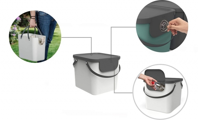Úložný box s víkem a madlem - ideální jako systém na třídění odpadu či jako úložný box na menší předměty. Objem 40L. Univerzální a modulární využití - boxy Albula jsou stohovatelné. Víko lze otevřít, i když jsou boxy naskládané na sobě. Moderní design. Kvalitní provedení od švýcarské značky Rotho.