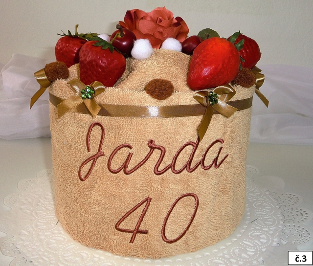 Textilní dortík s výšivkou jména (výběr ze 20 barev ručníků)