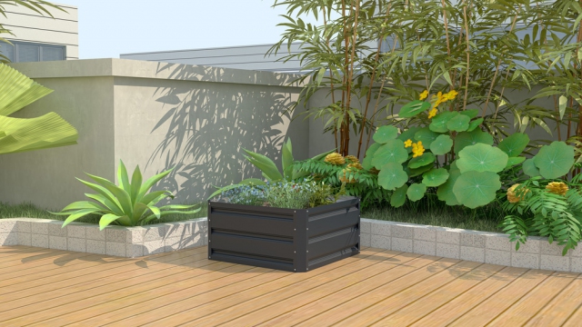 Moderní, praktický a jednoduchý vyvýšený záhon - bez podlahy - pozinkované ocelové panely - snadná montáž - barva: ŠEDÁ